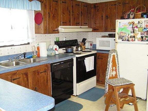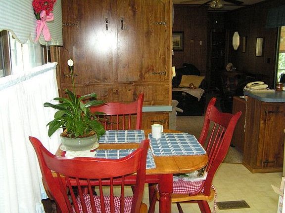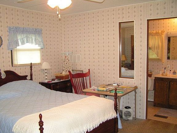 Two bedroom mobile home in an adult community with a split bedroom arrangement. Large kitchen with a covered screened porch and carport.