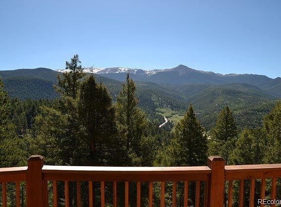 Luxury mountain masterpiece situated atop a mountain plateau with commanding views of Pikes Peak. Impressive Grand Room w/2-story windows framing the picturesque mountain scenery with adjoining gourmet kitchen. Spacious design with wrap-around decks and private guest areas. Quality finishes- granite, alder doors, cherry/birch cabinetry, Brazilian cherry floors, Outdoor living w/ (4) decks, flagstone patio w/fire pit. Land features year-round spring-fed pond and network of trails through the aspen and spruce forest. Extras: Built-in Guest (Mother-in-Law Quarters) include Open Living Area-Kitchen-Dining w/ Wood Stove. Upper Level Bedroom & 3/4 Bath, Security & Audio Systems, (2) Laundry Areas, Ample Storage, Detached Garage 3-Car Metal Garage. Gated and private.
