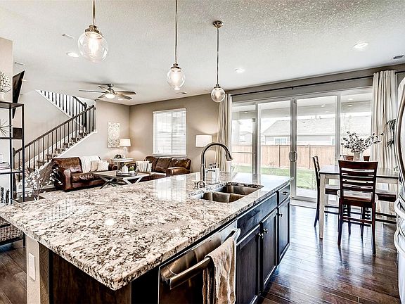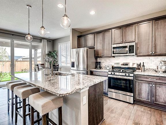 Location* Location*Don't wait to build!This home has over $69K of upgrades & is move in ready NOW! The main floor has a spectacular floor plan w/kitchen dining & living all open to one another! Gorgeous upgraded wood floors throughout the main floor! The kitchen features a large granite island with seating- perfect for parties! Upgraded tile & appliances! The adjoining dining area has a door out to lg. covered patio upgraded to be the length of the home! So much room for indoor outdoor living & entertaining family & friends THIS SUMMER!! The family room has a cozy fireplace to enjoy as you watch a game or a movie! Upstairs is an open loft that could easily convert to a 4th bedroom, 2 secondary bedrooms that are light & bright, hall bath & master suite. The master suite features a large walk in closet & an ensuite bath with granite, dual sinks, walk in shower & more! Close to I-70 & E-470 for easy commuting! Close to Vista Peak K-12 Southlands Mall! Coming Soon is 42 Acre shopping area!