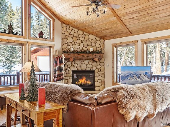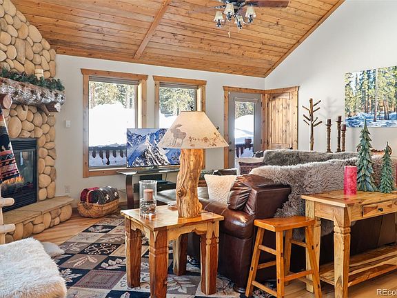 Charming ranch-style retreat in Valley of the Sun! This turnkey 3-bedroom, 2-bath home offers the perfect blend of comfort and mountain serenity. Enjoy single-level living with vaulted T&G ceilings and tranquil views of Sacramento Creek nearby. The inviting living room features a river rock gas fireplace, perfect for cozy evenings. The kitchen shines with granite countertops and hardwood floors, creating a warm and welcoming space. Outside, a detached oversized 2-car garage and a circular driveway provide convenience, while the adjacent 1.13-acre property backing onto wetlands expands your total land to 2.07 acres for endless outdoor possibilities. Located just 7 miles from downtown Fairplay and 26 miles to Breckenridge skiing, with national forest access minutes away—adventure is at your doorstep!