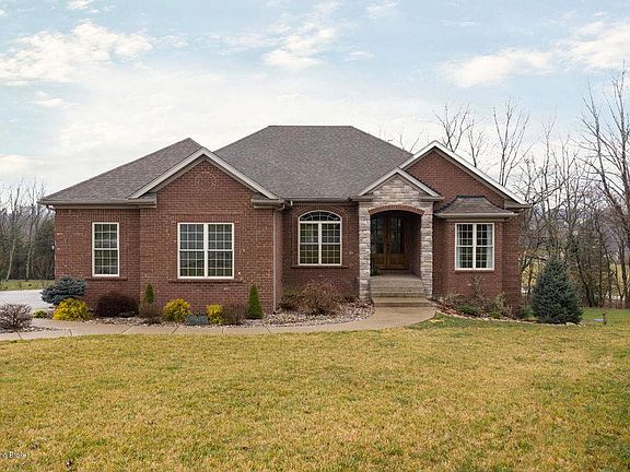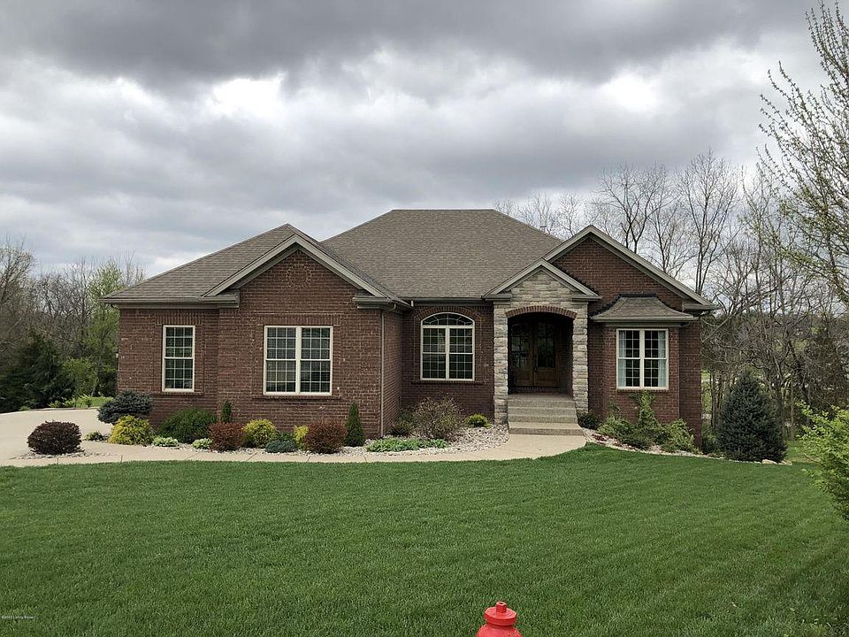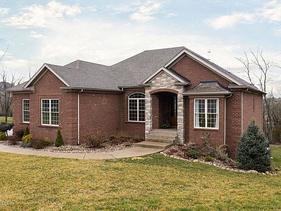 Gorgeous custom built, open concept, walk out ranch with 2 1/2 car garage in Fisherville (Spencer Co). This home shows like new with beautiful solid wood double doors that welcome you into this stunning home. The open concept floor plan on the main level contains 9' ceilings throughout much of the home, with a formal dining area with 12'-10'' tray ceiling, living room with 11'-11'' tray ceiling and crown molding lighting, kitchen with pantry and large breakfast area. The living room boasts a stone gas fireplace with custom built-in cabinets on both sides. The kitchen has extra tall custom Vittitow cabinets with tile backsplash and granite countertops on the island which includes a bar area and raised dishwasher. You will all in love with the master suite and its' unique private lay