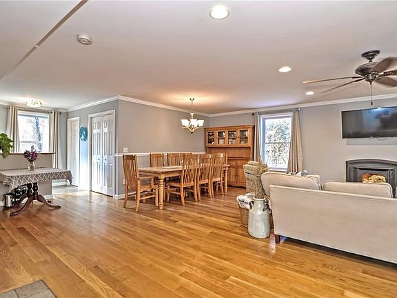 Meticulously kept 1600 sf ranch, one level living with hardwood floors, 3 bedrooms, an office/den and 2 full baths. The newer addition creates an open floor plan, with a large family room, open floor plan and pellet stove which serves as a secondary heating source. The basement is mostly finished with a large heated (electric) bonus or family room with two walk outs, and includes and plenty of storage space and a large workshop with a walk out on the unfinished side. The home has newer vinyl windows, an extended warranty (50 yrs) architectural shingled roof, newer well pump, and an updated on-demand hot water system. The property contains approximately 1.4 wooded acres, has a large deck off the back with an above ground swimming pool, fire pit, large shed and gardens and is on a quiet road in a wooded country setting. A must see if you are looking for a great home in this area! Call for a private viewing.