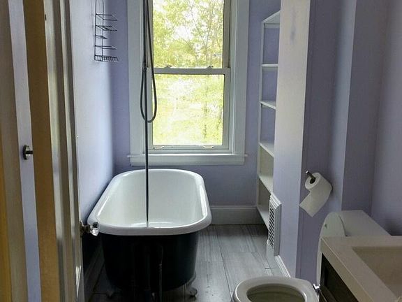 Separate back entry. Shared porch in front with separate entry. 100 year old house. Hardwood floors, stainless steel appliances, claw foot tub and shower. Full basement for storage with washer and dryer in place. 3 minute walk to green belt and 12 minutes from bug light and Smmc. Back yard, one car garage and separate driveway. + utilities. Tenant responsible for snow removal of their own yard.. I am happy to do snow removal if I am around. I'm ok to do the mowing