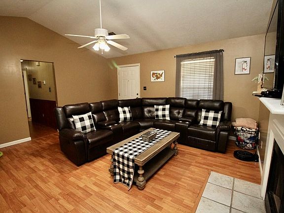 ONE LEVEL CHARMING HOME! This home boasts 3 bedrooms, 2 full baths and a LARGE fenced in backyard! Enter from the covered, rocking chair front porch into the spacious living room with a vaulted ceiling! Kitchen boasts a large dining area, tons of cabinets and countertops. The open concept living area is perfect for families that like to be together. Plenty of storage (utility room outside as well as the separate storage building in the back! The master suite is so spacious to allow for a king size bed. Call us today for your tour!