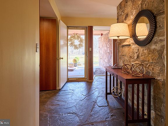 This unique property is available for $649,900. 199 Twigs Lane is a stunning home with 4 bedrooms, 3 baths, and an oversized 2-car garage with workshop. It was designed in 1956 by architect Kenneth Heidrich, influenced by the naturalistic principles of Frank Lloyd Wright's style. The house highlights the significance of views from inside the home and seamlessly blends the outdoors with the indoors, emphasizing the one-acre lot's connection to nature. With its spacious interior and unique layout, this home allows for customization to suit your needs and is ideal for both entertaining and unwinding. Some of the special features of this home include a covered entryway with stone accents and a heated stone floor foyer, an abundance of windows, hardwood floors throughout, built-in shelves and cabinets with custom artisan hardware, a stone hearth wood-burning fireplace, and a backup generator. The architecturally designed second-floor addition (2006) is perfectly appointed to offer two spaces. One is a large primary bedroom suite with walk-in closets, a full bath with a walk-in shower, and a skylight. The other is a bedroom/studio/office/exercise room filled with natural light—endless opportunities. The property features a spacious detached two-car garage with a workshop, and two sheds available for extra storage. The house is conveniently located near shopping centers, schools, downtown entertainment, restaurants, bike paths, and the historic Village of Boalsburg.