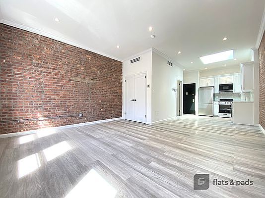 No Fee!! Brand new gut renovated, large and bright studio with luxury condo finishes, featuring: In-unit LG Thin Q Top of the Line Combo Washer/Dryer Luxury stainless steel appliance package Dishwasher & Microwave Central Heat & AC 2 huge closets 3 Large windows Massive Skylight White carrara quartz countertops and white shaker cabinets Recessed LED lighting throughout Crown and baseboard molding Large & luxurious fully tiled bathroom Deep soak-in tub Tons of natural light Video intercom system Semi-Private Entrance Excellent location 4 short blocks from the 3, 4 trains at Eastern Parkway and 7 short blocks from the A, C train at Fulton St. Just 30 minutes to Manhattan!! Close to Prospect Park!! Guarantors accepted & welcomed!! Pets allowed upon approval!!