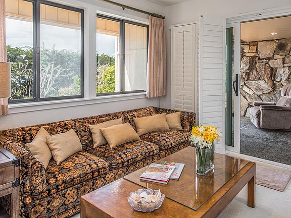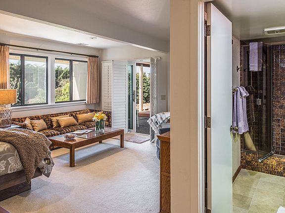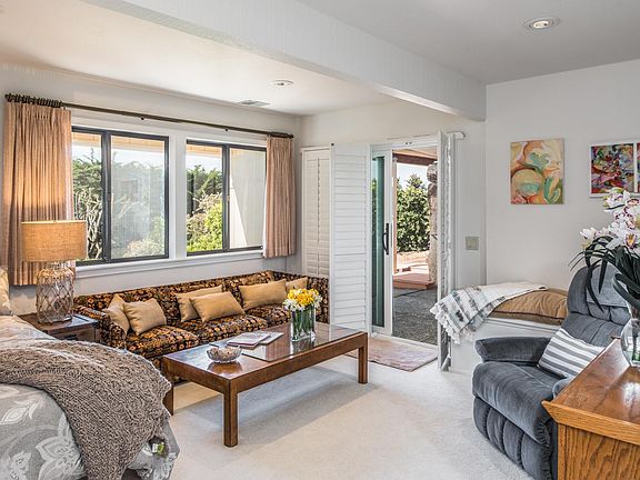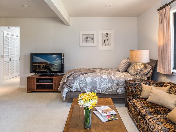 Welcome to "3769 Quartzite Hill" A cozy hideaway with special amenities in the magical Carmel Highlands, with distant views of the ocean and the sound of waves to lull you to sleep, is completely furnished and ready for long-term rental. This home is available for stays of 6 months and longer. Utilities are included in the monthly rate. The approximately 900-square-foot unit is on the ground floor of a split-level home, with one homeowner in residence on the second floor, but with its own private entrance and designated parking spot. Large extended windows and shuttered sliders invite viewers to look out at the large fenced backyard and beautiful cypress and Monterey pines, with glimpses of the Pacific ocean beyond. There are several private sitting areas where you can catch sunsets, enjoy early morning coffee or exit through the south fenced gate to walk down spectacular Spindrift Road and the ocean below you. The unit includes a new, fully-equipped kitchen with dining area, a living room with 42-inch HDTV and recliner, washer and dryer and several patio areas outside to enjoy. Despite the feeling of being away from it all, it's just five minutes by car to shopping and dining in the Crossroads and Barnyard shopping centers, 10 minutes to downtown Carmel, and 15 minutes to golf and sightseeing in Pebble Beach , enjoying historic Pacific Grove, or visiting Cannery Row and the Monterey Bay Aquarium. The apartment has a private bedroom with full bed, large closet, and a recliner. Another full bed is available in the living room area, which also includes comfortable couch, built-in seating, a recliner, a 42-inch HDTV with satellite service, and a door leading to an outdoor patio area. The adjacent bath has a shower with custom tile. A full kitchen with new stainless steel appliances, cabinets and island with a butcher block top beckons the cook, with an eating area for two in the sunny kitchen which has access to an enclosed area with a small water fountain and patio seating. No pets are permitted on the property. The upstairs thermostat controls the heat for the entire home including this private downstairs guest suite, but there is natural cooling by opening windows and a space heater is also provided. Property Characteristics: Filtered Ocean Views Through Trees Plush Carpeting Peaceful Residential Neighborhood with Access to Ocean View Walks Sleeps Up to 2 1 Bedroom & 1 Bath with Additional Bed in Living Room Comfortable Living Room Large Closets Fully-Equipped Kitchen * Washer and Dryer Large Fenced Backyard with Verdant Plants and Bird Habitat Three Outdoor Patio Areas Designated Parking Spot for 1 Car * NON - smoking only The rent will be $3103/month for a minimum of 6 months. If the guest stays for over a year, the rent may increase after the first 12 months. All utilities (excluding phone) will be included in the rent. The bed and TV in the living room can be removed, if the tenant would like to furnish that space with their own items. It will remain NOT pet-friendly and NON smoking. This will be a month to month lease.