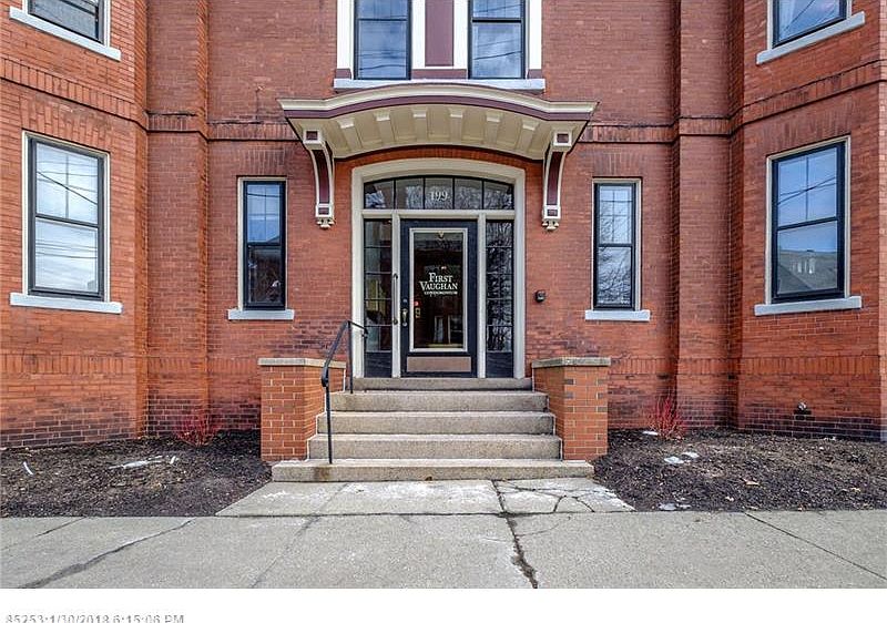 Welcome to 199 Vaughan Street! Superb West End location for this immaculate first floor condo where historic details are preserved alongside modern updates. Offering easy one floor living, chic new kitchen cabinets, countertops & appliances, fireplace, hardwood floors, built-ins thoughout, large master with wall of closets, private deck, deeded parking, secure building and large storage area with washer/dryer hook up. Meticulously maintained pet friendly brick building just steps from MMC, Waynflete and the Western Prom also includes new fire alarm system and completely updated wiring.