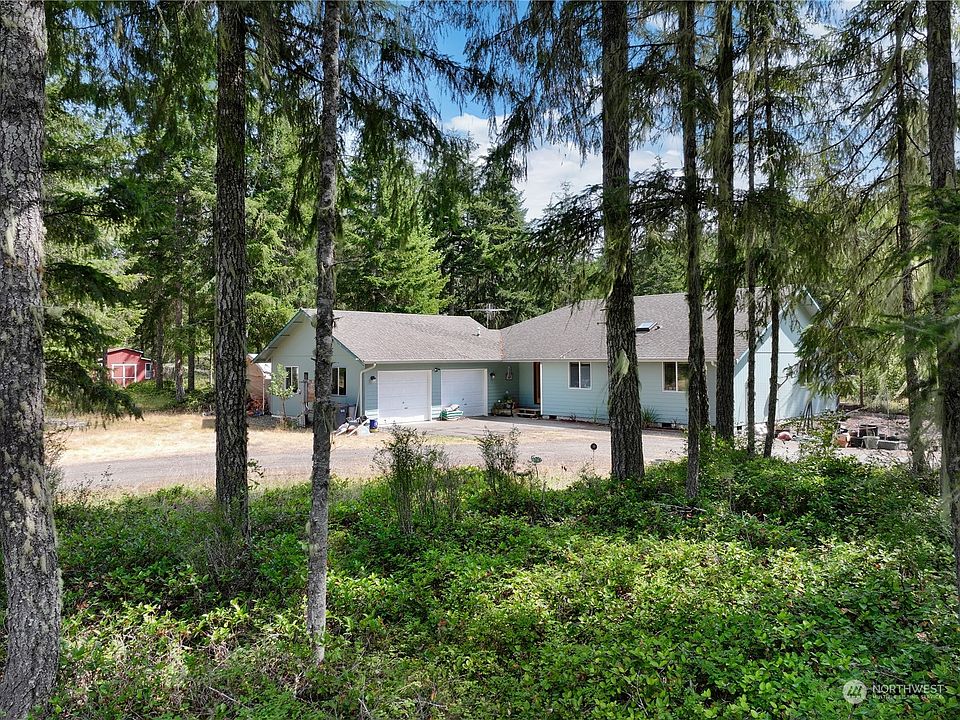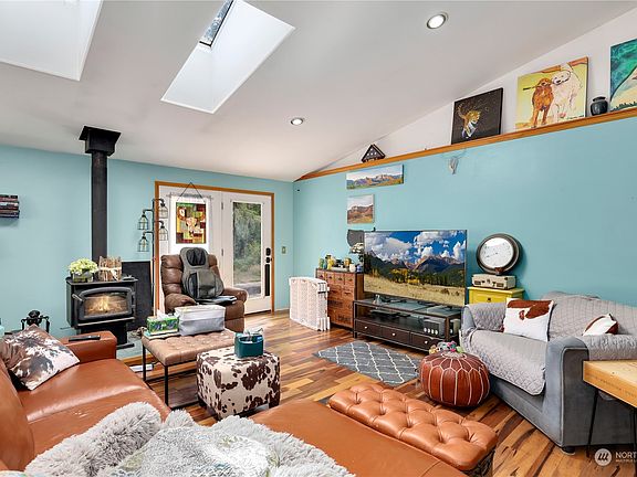 Welcome to this 3bdr/2 bath Elma home on 5 acres. This one-story home features Brazilian Pecan hardwood floors, 5 skylights & a big picture window that adds a ton of natural light, living room w/ wood burning stove, dining room w/ bay window, large kitchen w/ a pantry, primary bedroom w/ 5 piece bath & walk-in closet, 2 additional bedrooms, a bathroom, & a ton of storage. The home is set up for fiber optic for top internet speeds. Wired for a generator. There is an oversized 2 car garage & plenty of room for parking all of your toys. Newer propane furnace & tankless water heater. The huge yard is partially fenced, has fruit trees, garden area, a storage shed, mini barn, & backs to forest land for added privacy. Close to Schafer State Park.