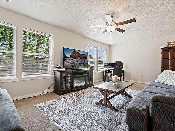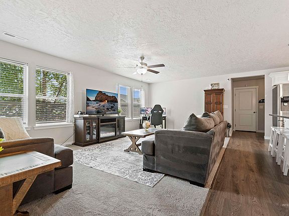 Lovely home with open floorplan and beautiful upgrades including granite countertops & island, stainless appliances, bright white cabinets, walk-in pantry and mudroom with bench, engineered hardwood and textile flooring. Upstairs you'll find three bedrooms, two with walk-in closets, the laundry room and a reading area. The master suite has a tray ceiling, oval soaker tub with shower, and dual vanities. You'll enjoy the oversized garage with beautiful epoxy floor coating and a man door to the gated side yard. The yard is well maintained with a full sprinkler system on pressurized irrigation, a vinyl fence with three gates and an enclosed patio area off the dining room. The HOA maintains the lawn outside the fence near the street. Landscape water is included in the HOA fee. This home is HERS rated for energy savings. The location is fantastic, on a corner near the Whites Acres community park and the city of Meridian Settler's Park. Come see it!