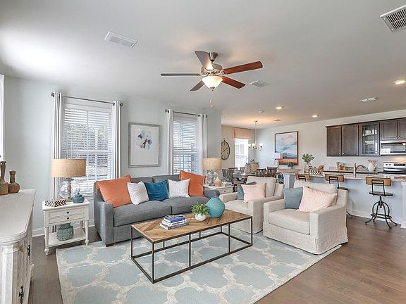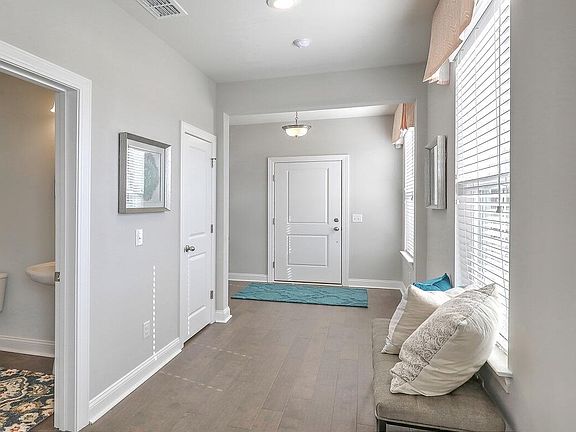 The Holly Plan! This home boasts a large 2nd floor primary suite w/ garden tub & separate shower, semi frameless glass and black matte finishes with tile surround, dual sink quartz vanity, and HUGE walk-in closet! Nice loft & 2 secondary bedrooms & separate laundry with tile flooring. Kitchen gas package, Quartz kitchen countertops with backsplash & large island with pendant lights prewired. Valet at garage entrance. Main floor laminate flooring, oak tread steps. Screened porch. Jasmine Point amenities include a beautiful pool, cabana, and wooded play park with sidewalks throughout the neighborhood. 350-acre lake access for boating, kayaking, fishing, paddle boarding. Home Energy Rating System (HERS) 45. Energy Series Plus Home