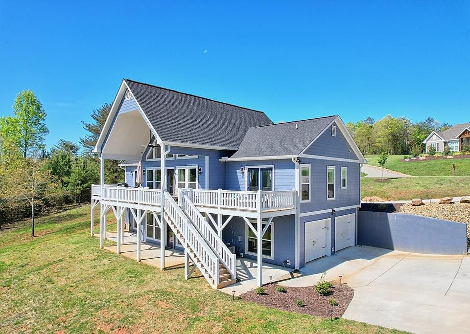 Charming Retreat in Exclusive Lakeside Community. Mountain Living at its best in this elegant 4 bedroom, 3 bathroom home with meticulously designed living space with luxurious feel and unparalleled comfort. Gourmet kitchen with stainless steel appliances, including double oven and microwave convection oven, complimented by soft-touch cabinets, farmhouse sink and stunning granite countertops. The open-concept living area is highlighted by cathedral tongue-and-groove ceilings and a magnificent gas-log stone fireplace, creating and inviting ambiance for gatherings and relaxation. Primary suite, laundry room and two additional bedrooms offer main level living with gleaming hardwood floors throughout. Entertain with ease in the finished basement, complete with LVP flooring, wet bar, and plenty of room for guests with an additional bedroom and bath. Additional amenities include two separate HVAC systems for personalized comfort and oversized garage for all your toys. With a sprawling deck, access to a private neighborhood marina and breathtaking mountain views, this home offers a serene retreat from the hustle and bustle of everyday life. The Mountains are Calling.