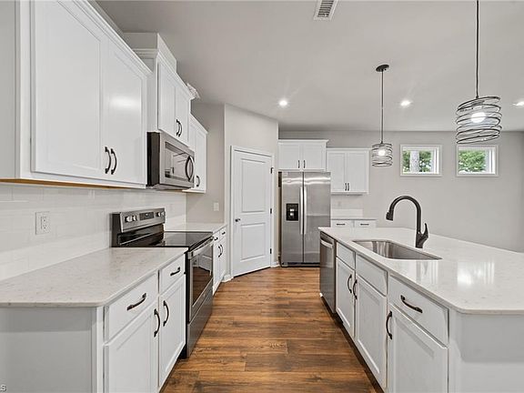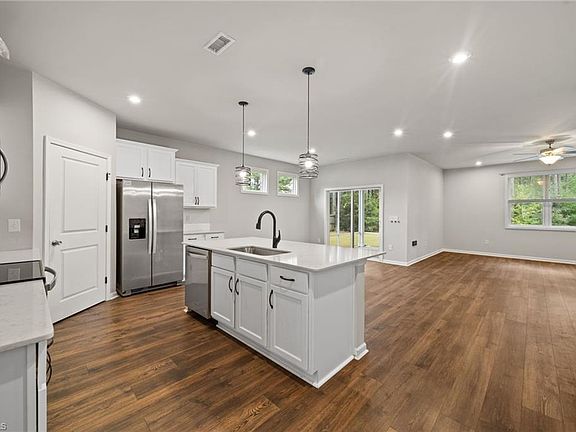 Beautiful Transitional Ranch style home in Johnston County on large lot. Spacious Open floor plan offers 4 bedrooms, vinyl plank flooring in all living areas and 3 of the bedrooms, large fenced in backyard, screened patio and 3 car attached garage. Family room has gas-log fireplace and a ceiling fan, and opens to dining area which has access to rear screened patio. Kitchen offers a large island with breakfast bar and sink, a pantry, stainless steel appliances, dishwasher,microwave, built-in electric range and granite countertops with tile backsplash. Laundry is conveniently located in hall near kitchen and bedrooms; washer & dryer remains. The primary bedroom has carpeting and a gorgeous ensuite bath with double sink vanity, solid surface countertops, beautiful large walk-in shower and a huge walk-in closet nearby. Bring your buyers to see this lovely home in Collins Station Subdivision with lots of space inside and out!!