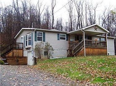 Very nice double wide home on gently sloping 2.7 acre lot framed with mature trees. Three bedrooms, 2 full baths. The master bath has separate shower and soaking tub. Both baths and the kitchen have skylights. There is a fire place in the living room. The refrigerator, stove, built-in microwave, dishwasher, garbage disposal, and window treatments are all included.