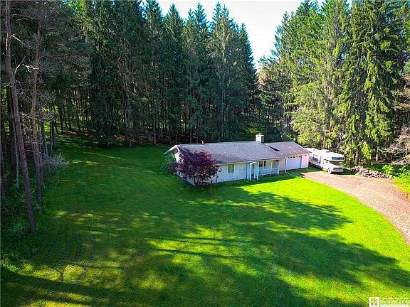 This beautiful 3 bedroom country ranch home was built in 1984 and sits on approximately 2 private and secluded acres. The home has carpeting throughout with ceramic tile in the kitchen and 2 full baths. All closets are cedar lined with plenty of shelving. The master bedroom has a large closet with full length mirror doors. The living room has a wonderful fireplace to keep you cozy on cold days. There are three sources of heat; propane, wood and electric for backup. There is no need for air conditioning in the summer, this home stays nice and cool without it. There is a new underground electric service and new hot water tank. Enjoy the wildlife and entertaining guests on the private covered patio right out your back door. There is a 25 x 24 two car garage with storage in the attic. This home will provide you all the comforts of living in the country yet easily accessible to Olean, Portville and Cuba. The home is located in high ranked Portville School District. As a bonus, it is minutes away from Pfeiffer Nature Center where you can take a stroll in the woods and soak in the great outdoors on the trails. The home is in move in condition. This home is a must see.
