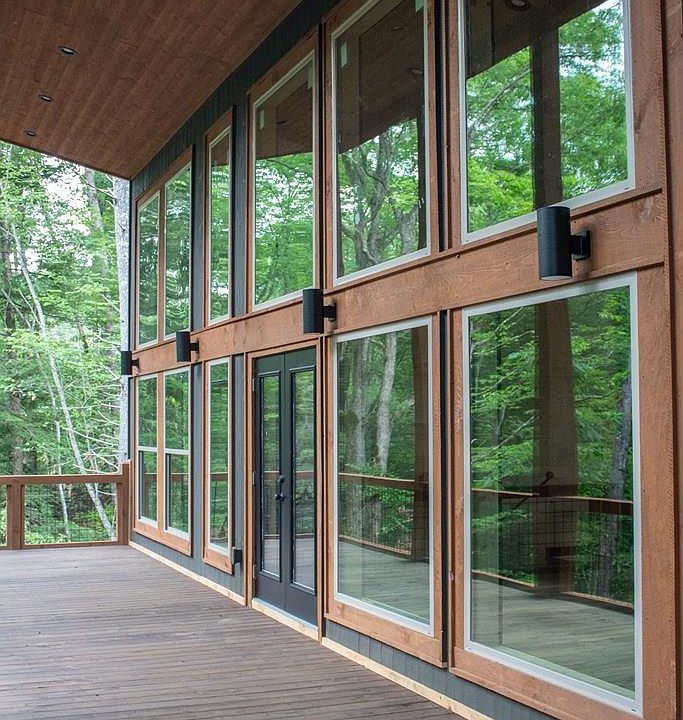 CREEK FRONT..... Experience mountain living at its finest with this stunning 3 bedroom, 2 bathroom modern cabin nestled along Big Creek, a certified trout stream, boasting 202 feet of rushing creek frontage. Located just off the highly desirable Aska Road, this property offers the perfect blend of privacy, adventure, and comfort. Inside, the open-concept design features two spacious living rooms, three fireplaces(2 indoor and 1 outdoor), and a wet bar-ideal for entertaining after a long day of outdoor fun. Floor-to-ceiling windows invite natural light and showcase the peaceful creek setting. Enjoy outdoor living year-round with a cozy fireplace over-looking the water, perfect for relaxing to the sound of the creek. A $3,000. appliance allowance allows buyers to personalize the kitchen to their taste. A unique bonus: the property extends across the road, offering endless possibilities- build a garage, man cave, game room, guest house, or mother in law suite. The options truly are limitless. Minutes from hiking, biking, tubing, kayaking, and more from the Aska Adventure area, this modern cabin is ideal as a full time residence, mountain get away, or income-producing retreat.