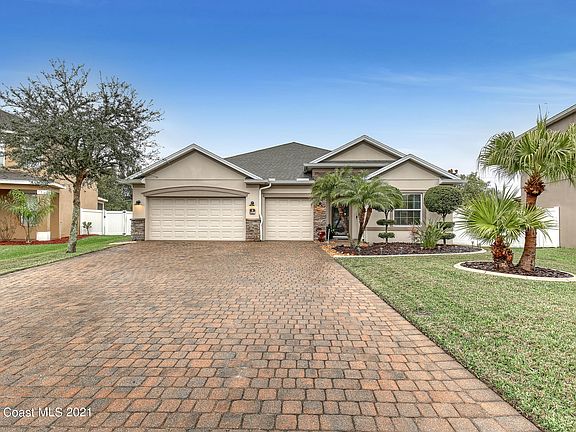 STUNNING ROCKLEDGE HOME 4/3/3 with community pool in the desireable Phillips Landing Subdivision. From the moment you enter this home, you will fall in love! Open and spacious withs lots of natural light. Tile throught the main living areas,, Gourmet kitchen with gorgeous granite counters, designer backsplash and breakfast bar, sleek black appliances,nice walk in pantry,adorable built in breakfast nook, Over-sized bedroom that could be used as a mother in law suite,covered screened porch, brick pavers out back, great for a firepit, completely fenced yard, good size master bedroom with huge master closet,3 car garage and the list goes on and on. ROOF (8 years) A/C (8 years) Hotwater heater (8 years) This home will not last long! Make your appointment to see it today!
