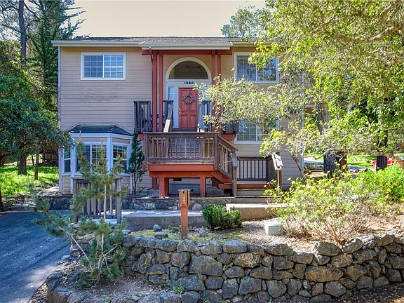 This one has it all! On a large property, you get 3 bedrooms, 2 baths, open living with vaulted ceilings and beautiful post and beam details, huge fireplace, multiple bay windows, landscaped gardens with walks, gazebo, garden shed, and an oversize 2 car detached garage! The setting is quintessential Cambria, quiet and private with plenty of space between neighbors, and Santa Lucia Mountains views. The front walk brings you to covered porch with sitting area. Step into the mid level entry and take in the volume of high ceilings and beamwork. Up the half flight land at living, kitchen and dining, as well as the main bedroom. Downstairs you find 2 more bedrooms, a full bath, ample laundry/mud room, and a bonus room for office/media/4th bedroom use. There is plenty of storage, especially in the kitchen! The many windows make this a bright and cheerful home just waiting for you!
