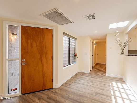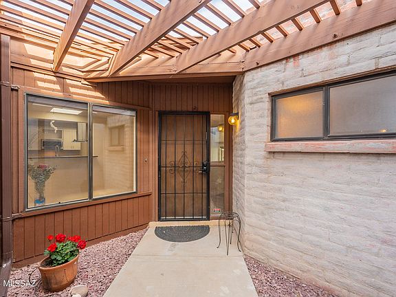Welcome to this lovely 3 bed/2bath townhome in the desirable Catalina Foothills. Just north of River Rd/Campbell Blvd & perched in the elevated lots of Campbell Ter. Easy access to the loop river walk, the U of A, Banner Hospital & yummy restaurants. Meticulously maintained & highly updated, will please the senses w/its open floor plan, cozy fireplace, high ceilings & a beautiful kitchen w/newer appliances & quartz countertops. A spacious primary bedrm w/ walk-in closet & a large window overlooking the outside patio w/its beautiful plantings. Hummingbirds love to visit the patio! The updated primary bath w/custom shower, double sinks & gorgeous soaking tub provide a soothing & relaxing place at the end of the day! Pool,tennis court & pickelball & guest parking. 2 car garage! The second bath is also updated w/a custom walk in shower.
