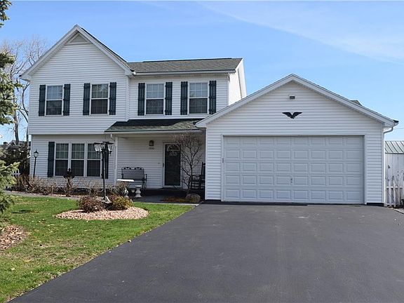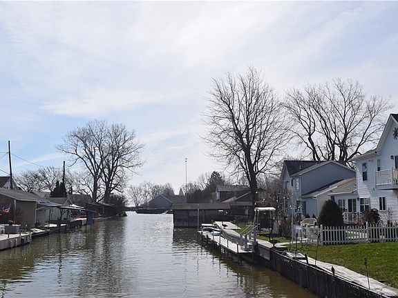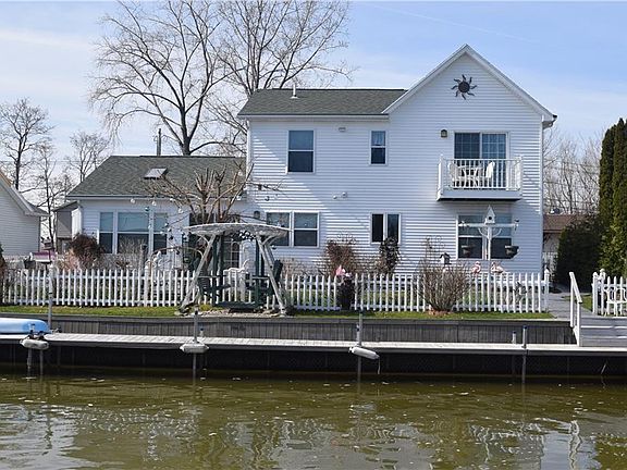 Enjoy a fresh breeze on warm summer evenings from Lake Ontario in this charming WATERFRONT 3 bdr/2.5 bath colonial.This home is on Long Pond Channel leading into both Lake Ontario and Long Pond safe from any flooding/wave issues.Keep your boat/jet ski tied to approx. 65' of protected dock. Outside the sliding door is a fenced in yard,beautifully landscaped gardens,stamped concrete patio and walkways.You will love the open floor plan with cathedral ceilings,sky lights & gas fireplace in great room. Radiant heated floors in living room & great room. First floor laundry. Master bedroom features sliding glass door to balcony w/ stunning Lake views, large walk in closet & master bath. Awesome location just steps from Goodwin Park and only 1 mile from the Parkway! No flood insurance required.