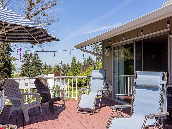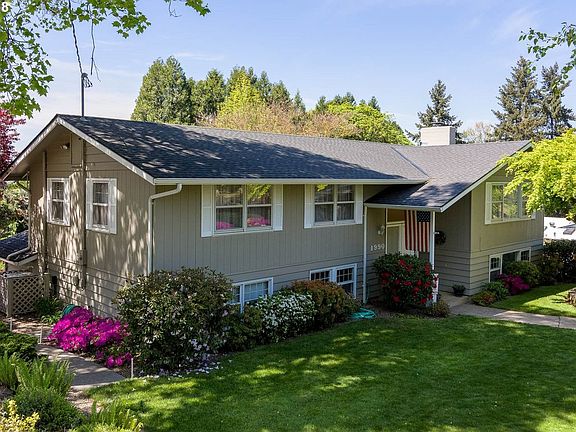 Enjoy the beautiful sunset views!! A gardeners paradise. Great for entertaining. Main level living area Featuring hardwood floors in kitchen and dining area. Stainless Steel appliances. Large living room. Lower level has large family room with bar. Vinyl Windows. Laundry Chute. Extra deep 2 car garage with shop area. RV Parking. Heat pump for central heating and air conditioning. Move in ready. Corner lot. This is a must see.
