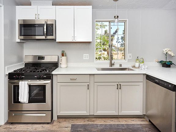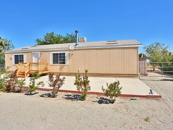 Beautifully updated and modernized 3 bedroom 2 bath manufactured home in Pinon Hills. This home welcomes you in with a large front concrete patio that enjoys beautiful views of the San Gabriel Mountains to the south. The home has a new roof and on the inside it been renovated with new interior paint, new high end Lifeproof laminate wood flooring, new hand troweled textured ceilings (no more acoustic), a completely brand new kitchen with both gray and white cabinetry, white quartz countertops and stainless steel appliances, and new carpet, lighting and plumbing fixtures throughout. In addition to central heat the wood pellet stove is the perfect clean solution to create a cozy environment and to warm the home in cooler months and the evaporative cooler keeps the home cool in the summer. The back of the property is completely fenced providing a ton of space to enjoy and entertain. There are 2 storage sheds in the backyard and a massive 10X40 container that is included with the property too. Finally, this home is located in the desired Snow Line School District and zoned for horses. Make sure to add this home to your list today!