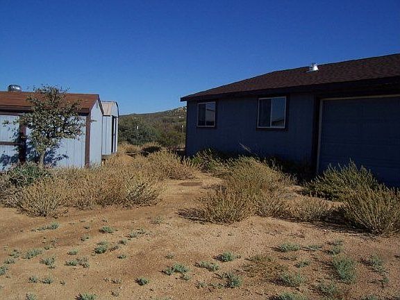 2 Bed, 2 bath, wood stove, wrap deck, well house, 2 storage sheds, R.V. parking, fenced and gated. Over 1200 sqft site built building with 1/2 bath, all utilities, could be used as a guest or in-law suite. Garage workshop, backs to Prescott National forest, views forever, home needs work, sold "as is".
