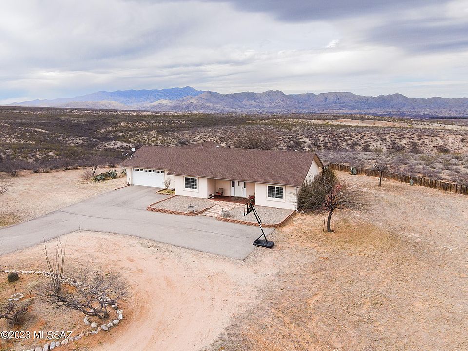 Private country living just minutes from Benson with easy access to I-10 for commuting to Tucson or Sierra Vista. This 2032sqft custom home sits on 7.24 acres and has panoramic mountain views. The home features 3 bed 2 bath with an office/den, open floor plan concept, hickory cabinets, Corian countertops and breakfast bar in the kitchen, oversized tub with separate shower and double vanities in the primary suite, propane fireplace, 2 car garage, covered patio, water softener with reverse osmosis and paved driveway in front of the house. The property includes a 2016sqft Agricultural Utility Building with RV parking and electrical and water hook ups. Building includes a covered area perfect for future horse stalls for animals. This one has so much to offer! Call TODAY to schedule a tour!