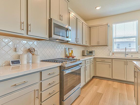 Welcome to the Elberberry newer home community! This contemporary, smart home boasts a state-of-the-art kitchen with stainless steel appliances, abundant cabinetry, and central island perfect for culinary exploration. The first floor showcases an expansive open floor plan where the great room & dining areas flow seamlessly. Sliding glass doors with automatic window treatments open to the outdoor patio and lawn. A secondary bedroom & full bath near the entrance is perfect for guests or a home office. Upstairs, three additional bedrooms surround a versatile loft space. The Owner's Suite is a true retreat, featuring Shaker-style cabinetry with soft-close drawers and doors, walk-in closet, Piedrafina countertops and backsplash. Built for energy efficiency, this home includes solar power, a tankless water heater, pre-wiring for an EV charging station, LED lighting, low-VOC interior paint, smart home HVAC and Ring alarm security system. Elegant double panel interior doors are found throughout the home. Expanded driveway for extra parking. Experience the benefits of owning a new home, from modern amenities to lower maintenance costs. Your dream home awaits!