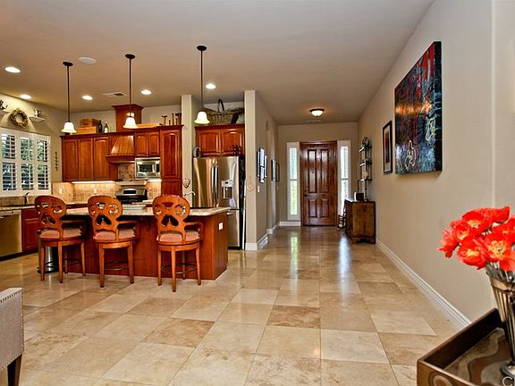 Doesn't everyone want to live in HILLVIEW TERRACE? Here you have the convenience of being near town & shopping & the feel of living in the country with hiking & biking trails close by. Step into this luxurious home where amenities have been added for your comfort & style. There are custom shutters & rooms enhanced with gorgeous crown molding. Travertine floors lead you to the kitchen with it's stainless steel appliances, granite counters & two prep sinks. There is ample room for everyone to gather round & share the day's stories while making that special meal. Or come relax in the living room where you will enjoy the fireplace once autumn sets in. The spacious master suite has a fireplace & sitting area where you can lounge with your morning coffee. The master bath has a separate soaking tub & shower, a dual sink vanity, & a separate water closet. Extra linen storage was added & you'll be sure to love the walk in closet! There is a private exit to the back yard that was recently landscaped with star jasmine and gardenias. It is one of the largest lots in this development. There is no one living on the other side of the back fence so you can enjoy your privacy on a quiet afternoon. Will you add a gazebo or raised garden beds? And there is plenty of room for a pool. Speakers for your music are inside & out! Don't forget the garage! It's OVER Sized so you have extra storage or room for a large vehicle. This home has attention to detail & has been gently lived in by one couple.