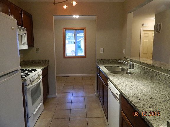 Spacious 2 story townhouse w/ MANY UPDATES. Open concept & bright floor plan with fresh paint & new flooring. Living, dining, kitchen, full bath all on main floor. Master suite features double closets, & shared full bath w/ dbl sinks. Additional 2 bedrooms on 2nd floor. Kitchen boasts granite counters & custom cabinets. Beautiful granite breakfast bar & additional table space. Full finished basement with walk out to private fenced patio makes perfect for entertaining. Walk to near by school and park! Minutes from expressway and shopping! Agents: see agent remarks for more info.