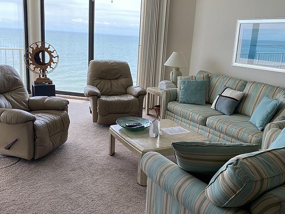 This seventh floor two bedroom two bath oceanfront home is extraordinarily beautiful. Fully furnished with designer touches. Spectacular views overlooking the ocean. Beautifully decorated upgraded kitchen bathrooms and flooring. This one will be hard to beat. This home is pretty much booked up to the end of October. Stainless steel appliances, granite countertops, walk in showers tiled floors. Luxurious feel as you enter this home. It will sell itself.