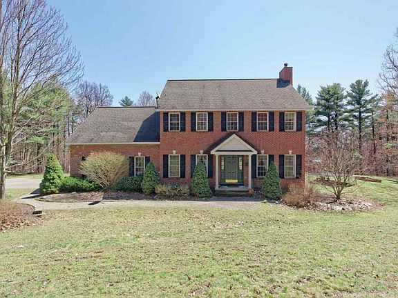 This is the HOME you've been waiting for! Absolute PRIVACY in a beautiful NATURAL SETTING. On almost 4 ACRES this Classic BRICK FRONT COLONIAL offers 4 large bedrooms with MASTER SUITE and huge Master Bath with WHIRLPOOL TUB and Private Shower. Dramatic open LOFT overlooks the sunny BREAKFAST NOOK below. Open Kitchen with STAINLESS STEEL appliances and breakfast bar. Cozy Living Room with WOODSTOVE for the cool winter nights. Formal Dining room features designer CHAIR RAIL and UNIQUE LIGHTING. 1st Floor Laundry Room off Mud Room. HARDWOOD floors throughout this fabulous 2544 sf home. Step out the sliders to the HUGE DECK overlooking the rambling grassy yard surrounded by trees. Not a neighbor in sight and only MINUTES to all major HIGHWAYS!