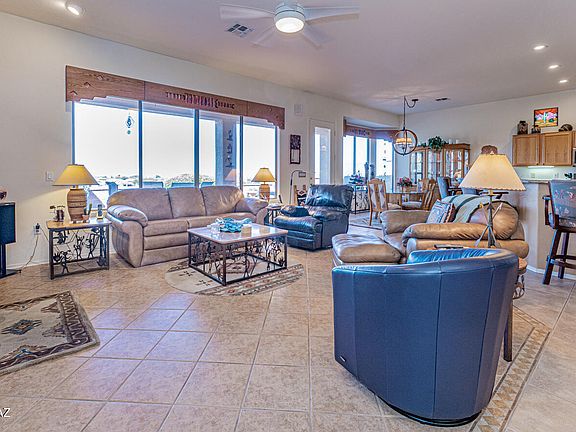 The just right home! 2 bedrooms, 2 bathrooms, den, open great room, laundry/hobby room, kitchen with an island, newer appliances and granite counter tops , a super sized 3 car garage, 3 bay windows, no sliding glass doors, higher ceilings, loads of windows and tile flooring in all the right places.Private backyard high above the desert valley with views of 3 mountain ranges. Easy to buy and easy to move right in!