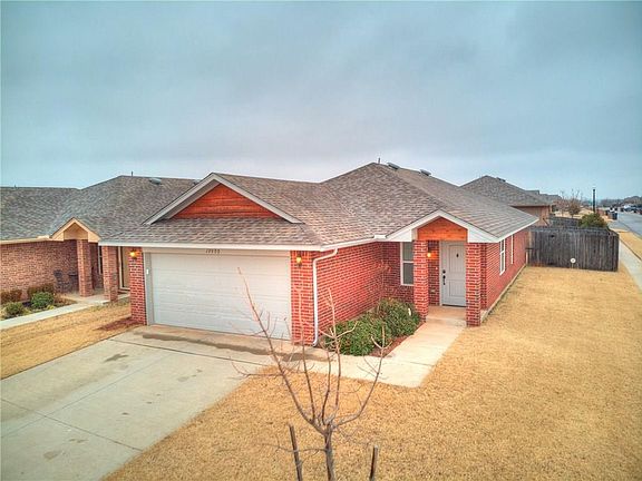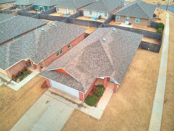 This one-owner home custom built in 2014 with EVERY extra available. LIKE NEW and spotless! Sits on a big corner lot and full of upgrades including oversized back patio, new interior paint, sprinkler system, kitchen granite, upgraded stainless kitchen appliances, cedar gables, upgraded master shower, new engineered vinyl wood floors throughout (no carpet!), back storm door. It's beautiful inside with gorgeous colors and MOVE IN READY. High ceilings, kitchen pantry, big bedrooms with big closets and flatscreen TV already installed in ymaster bedroom! Features Low-E Thermalpane vinyl windows and Home Energy Rating System (HERS) index rating between 46-52. Also has attic/roof tornado bracing. Neighborhood HOA features a pool, clubhouse, park, playground and workout facility. It's also walking distance to amazing top-rated EDMOND SCHOOLS! Minutes from Hefner Parkway and close to shopping, restaurants. Perfect for first-time home buyer. Buyer to verify all information including schools.