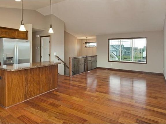 This home has a 2 story open foyer w/wood trim. Laminated wood floors in kitchen & dining room along w/recessed lights & 2 pendent lights over center island, roll out shelves, lazy susan & recycle bin. Master Bedroom has 5 ft shower w/tile walls. Wired for your flat screen wall TV's in all bedrooms. Iron rails in the living room, LED stair lights which illuminate all night long. 3 large full sized windows & patio door in full walkout unfinished basement. In ground sprinkler and sodded yard