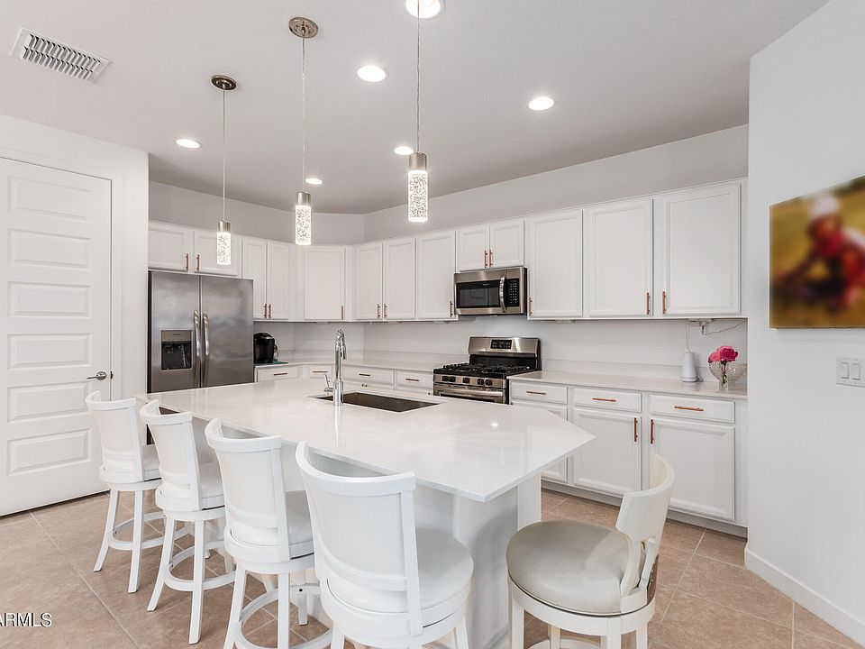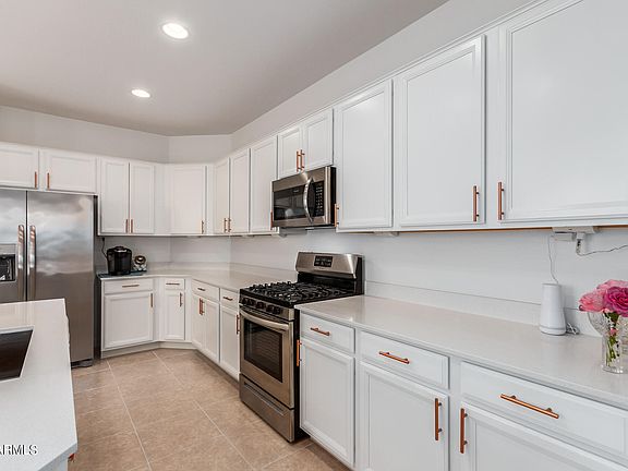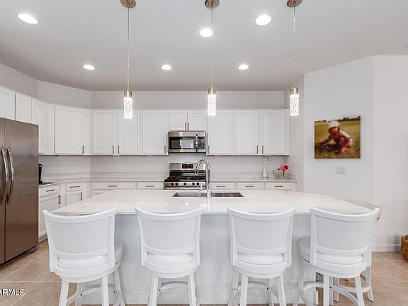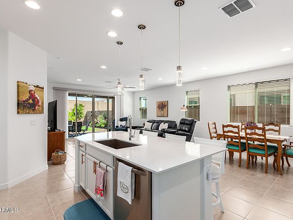 Seller may help with concessions with right offer. Discover this charming 4-bedroom, 2-bath residence in Verrado !You'll find an inviting great room with durable tile flooring, window blinds, and sliding doors that lead to the backyard for seamless indoor-outdoor flow. The open-concept kitchen boasts sleek quartz counters, plentiful white cabinetry, stainless steel appliances, a walk-in pantry, and a large island with a breakfast bar. The main bedroom is complete with an ensuite with dual sinks and a spacious walk-in closet. Venture outside to enjoy the covered patio, stylish pavers, and fragrant citrus trees.