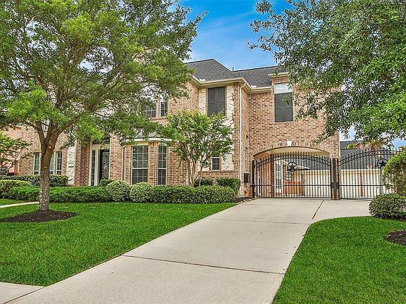 Lovely brick and stone 2-story with elegant DOUBLE-GATED DRIVEWAY and Porte-Cochere! Mature landscaping, covered front porch, sprinklers front/back. Enter to gleaming HARDWOOD floors, sweeping iron staircase with newer carpet. Flanked by study with French doors & wood floors. Formal dining with cove lighting, bay window, wood floors. Kitchen offers granite counters, tumbled marble/granite backsplash, prep island, stainless appliances, breakfast bar and wood floors.Door from kitchen to porte-cochere makes it easy to bring in the groceries. Bright breakfast nook & back staircase! Den features wood floors, gas fireplace and slate surround. Master bedroom offers carpet, tall ceilings, door to backyard. Cozy sitting area with fireplace, mantle and Plasma TV area. Master bath with slate floors, dual shower heads, jetted tub and closet organizer system. Large gameroom up and \"secret room\". Bedrooms with Jack/Jill bath, craft nook and storage closet. Pool ready backyard! Roof 2015, HWH 2017.