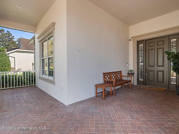 Don't miss this amazing home, priced far below similar size homes in the community and offering so many additional features. Located in the ''Cascades'' section of Southern Hills Plantation Club, this property offers a lifestyle of comfort, activities, convenience and security above expectations. Enter your community by way of oak-shaded boulevards, lined with traditional gas light poles and through an impressive gatehouse. Your beautiful 4-bedroom, 3-bath and 3-car garage residence offers 3130-SF of living and 4,438-SF of underroof space. As you step inside you will immediately notice that this immaculately maintained home offers features rarely seen in today's home construction. Walking down a covered porch area paved in brick, you will enter an impressive foyer with a high tray ceiling. You will later notice that the same 12-foot ceilings with crown molding run throughout the whole house providing an airy, palatial feel to your daily living. The stunning wood-plank style, rectified porcelain tile floors will guide you to the huge formal living room which offers a variety of possibilities (whether as a formal living room, a stage for musical concerts or as the game room you have always wanted). As you stroll further and view the space with another tray ceiling, you will be reminded why a formal dining room is still a desired feature of any inviting residence. Of course, not leaving the modern touches out, you will be delighted to see a huge great room with a gourmet kitchen and living room, again with a large tray ceiling. Not only does the home offer a split bedroom plan, but you also have a veritable master suite totally separated from the 3 other bedrooms and the rest of the house. Yes, as a host, you have the privilege of having a quiet retreat should you desire to retire early while your guests continue to enjoy your hospitality. The master offers a huge bedroom with tray ceiling and bay window as well as a fitting master bath with ''his and her'' spaces tied together to a shower large enough to practice dance moves (with caution, please). Your master suite is completed with 2 large walk-in closets and a soaking tub. Through French doors, you can also enjoy a large, air-conditioned lanai (not included in the 3130-SF of living space) with vinyl windows and an exterior patio showing off private nature views on your conservation lot. You will also notice other unique features and upgrades from quality plantation shutters, double paned windows, Profile GE appliances and gas stove/cooktop, recessed LED lighting throughout, wired speakers, fan timers, updated baths with level 3 granite, security system, and more. Recent exterior renovations and upgrades include a new quality roof, hot water heater, epoxy garage floor and house paint. Situated in a 55+ community, you will find limitations here. Your low HOA dues includes use of a large pool, modern clubhouse, exercise room, bocci balls courts, pickleball courts and walking paths. You will also save money because the HOA includes maintenance of your lawn, plantings and sprinklers as well as expanded cable television and internet! If that is not enough for you, you can take a golf cart or walk down the street to join one of the top golf courses in Florida at the Southern Hills Plantation Club with its championship Peter Dye Golf course, resort style pool bar and other activity centers. All this is close to shopping and about 45 minutes to Tampa and airport. Make it your new home today!
