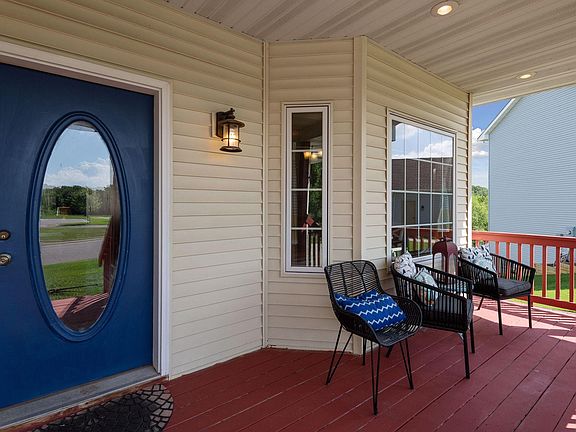 Bright and open two story home in cul-de-sac. Relax in front of your Fireplace in the living room or watch the sunset in your 4-season porch. Upstairs you can relax in your master with vaulted ceilings and large private bath with separate jetted tub and shower. Two other bedrooms and full bath on upper level. Lower level has large open family room or can be large bedroom or walled off and add another bedroom. Lower level also boasts a 3/4 bath and walks out to large backyard. Fresh paint in lower level. Full yard irrigation system with a sand point so you are able to water your lawn without the water bill. Beautiful large open green and Neighborhood park right across the street along with disc golf course. Lower level currently used as photo studio but can be used as a family room, 2nd master, or add a wall and add a couple bedrooms. Don't miss out on this beautiful two-story home.
