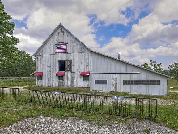 Dreaming of owning your own Equestrian facility or Wedding venue??? This is the perfect location to explore your dreams or build a successful business! Located just 15 minutes from downtown Lee’s Summit and on paved road this facility has so much to offer - 3 Barns, covered round pen, bunk house, home ready for remodel and so much more! Main barn features kitchen and game room along with 5 stalls and a stunning hay loft with 25’ ceiling perfect for events! Event barn is the perfect spot to host parties/weddings with a concrete floor, full restroom, stalls with outside doors, and enclosed riding arena! Just outside the main barn and events center is a kids riding arena as well as a covered round pen with holding stalls! Continue up the hill toward the back of the property and you will find a well kept barn with 17+ stalls, wash area, and tack room. Bunk house is just steps away from the barn providing the perfect location for a guest suite or possible rental for additional income opportunity. The vast 21.52 acres extends all the way to the tree line on the south border encompassing an outdoor riding arena and plenty of pasture space.