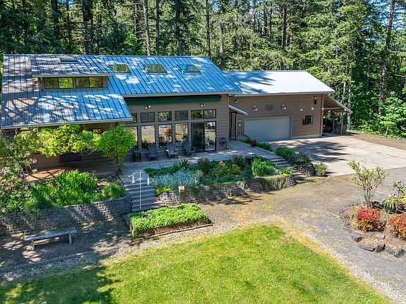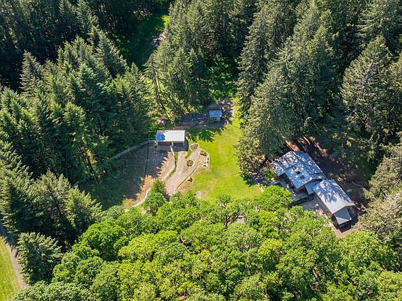 Welcome to Eagle Point! This 3.9-acre property offers a custom-built home with soaring ceilings, exquisite woodwork, hardwood flooring and expansive windows that fill the home with natural light and park-like views. With three bedrooms, two full baths, and two half baths, there's ample space for family and guests. The main-level master suite and additional bedroom offer convenience, while the upper level boasts a spacious loft family room, an extra bedroom, and a bathroom. The exterior impresses with a metal roof, cedar siding, an oversized garage with a workshop and huge unfinished bonus space above the garage. The landscaped property includes trees, meadows, multiple seating areas, a water feature, porch swing, and a large back deck with ramp access. Horse lovers will appreciate the brand new 32x18 barn and fenced pasture, RV parking, and fenced garden. This property offers endless possibilities for a private retreat or a place to nurture your passions.
