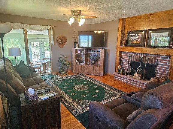 Your perfect oasis awaits with this wonderful ranch home on a corner lot in a nice rural setting. Enter to an inviting open floor plan with hardwood floors, wood burning fireplace, sun room and kitchen with ample storage. Laundry is on the main floor for your convenience. There are 3 bedrooms. The primary has a half bath and the main bath is in the hall. The basement has a large family room, a kitchenette and a 3/4 bath. Walk outside and see mature trees and a large 39 x 40 metal shed for a great workshop and additional storage. The roof was new in 2023, the garage door was new in 2024. HVAC was new in 2020. Two car attached garage. Located near to town with easy access to the interstate to quickly get to Des Moines. The metal shed is being sold in its as-is condition. This is a must see! Call for your personal showing! Agent is related to seller.