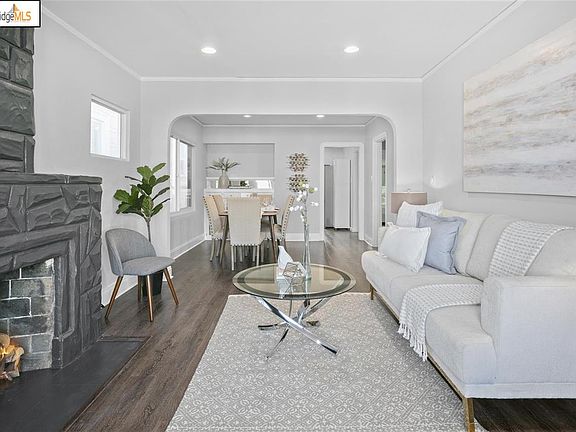 Classic bungalow w/ luxury updates and original charm. New laminate floors, huge windows with southern exposures, ample closets, recessed lighting, fresh paint throughout. Flowing mixed floor plan. Wood-burning fireplace in living room. Elegant open dining room w/ custom built-in storage. Chef's kitchen w/ high quality SS appliances (including gas range), quartz countertops, full-height subway tile backsplash, and ample country-style cabinetry. Bedrooms all have hardwood floors and sizeable closets. Attached 1 car garage. Sprawling backyard w/ fruit trees, planter boxes, large patio, storage shed, and separate finished unit--perfect for a home office or for updating into an ADU to rent out. Located on a sunny residential block in the heart of Fruitvale. 5 blocks to Fruitvale BART, walking distance to restaurants and shops, & close to freeways and AC transit stops.
