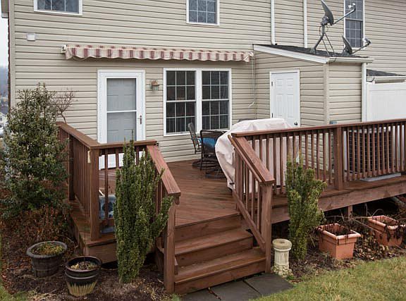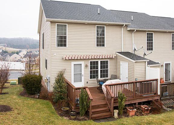 This is an end unit with numerous upgrades. These upgrades include stainless kitchen appliances, ceiling fans in all bedrooms, front loading washer & dryer, storm doors, custom window treatments which convey to purchaser, retractable sun shade on rear deck, and attractive landscaping. The roof was replaced in 2009. Other features include hardwood in living room, large master bedroom suite with jetted tub, spacious kitchen with an island and a single car garage.