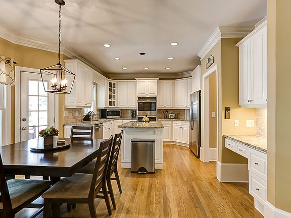 - Kitchen Features: Eat-in Kitchen, Pantry, View to Family Room, Stone Counters, Kitchen Island, Cabinets White