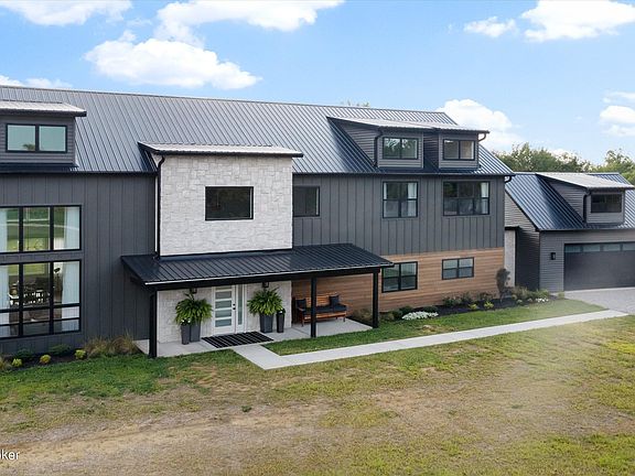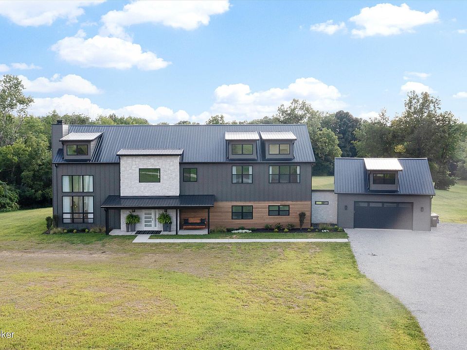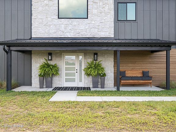 Welcome to this incredible contemporary estate on 17.5 acres in desirable Fisherville. Enter in to soaring ceilings with wood beams and gorgeous flooring. This modern open concept floor plan is artfully crafted to enjoy abundant natural light with 5 bedrooms and 3.5 bathrooms! There are modern touches throughout such as beautiful custom cabinetry, unique stair rails and a huge kitchen island with a prep sink and second oven. This is the perfect space for entertaining. The main floor boast 2 primary bedrooms, both with private full bathrooms. There is also a half bath on the main floor. There are three more beautiful bedrooms up with walk in closets and incredible views, and a full bath to finish off this space upstairs. Head through the breezeway to a 2.5 car garage. Conveniently located in the garage is a storm shelter. Climb the spiral staircase to above the garage where there is 400 sq feet of unfinished space that would make a perfect apartment. This estate is well insulated and has low energy costs. This rare opportunity is only 10 miles from I-265 on 17.5 private parklike acres, FULLY fenced! This property was once a horse property and could easily be again. This magnificent estate has pasture, timber and trails to walk, or relax on the covered front porch while enjoying the sunrise over the picturesque hills.