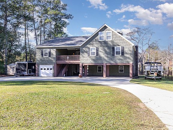 **MOTIVATED SELLER** Nestled along the serene banks of the Waccamaw River, this stunning three-bedroom home combines modern elegance with the tranquility of nature the exterior features warm colors, harmonizing beautifully with its surroundings.   As you step inside, the living area greets you with expansive windows that flood the space with natural light and offer breathtaking river views. The cozy living room invites relaxation, while the adjacent dining area is perfect for family gatherings. Step outside onto the expansive deck to entertain guests or soak up the sun with the calming river as your backdrop. There is also a 40ft deep closed garage/workshop and large bonus room with half bath, wood burning fireplace, and bar on the ground floor. The home boasts a private boat and jetski dock, making it easy to embrace the river lifestyle whether it's fishing, kayaking, or simply enjoying peaceful evenings by the water. Surrounded by easy-to-maintain landscaping, this home offers incredible aesthetics and strikes a perfect balance between modern living and a lifestyle of relaxation and outdoor adventure. Whether you're inside enjoying the comforts of modern living or outside immersed in nature, this riverfront haven is truly a gem.