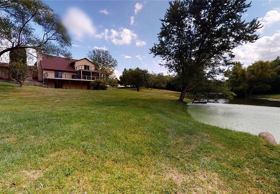 - Exterior Features: Workshop Area, Wooded, Outbuildings, Dock, Water Frontage, Tillable, Circle Drive, Pond, Deck