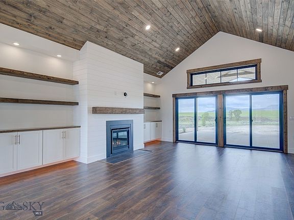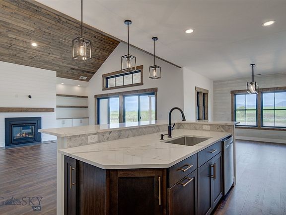 Exceptional craftsmanship with Montana modern feel in a brand new custom home! Single level, 4 Bedroom, 2 Bath, 2250 sq ft on almost 5 acres with spectacular mountain views. Contemporary clean lines and high ceilings welcome you into an open concept living area. Wow factor includes glass doors that frame picturesque views and tongue and groove ceiling extending to expansive porch. Spacious layout seamlessly connects the living room with fireplace, gourmet kitchen, and dining area creating a warm and inviting atmosphere. Under cabinet floor lighting adds to room's ambiance. Kitchen boasts higher end stainless steel appliances, gas stove, quartz counters, designer back splashes and an incredible walk-in pantry. Master en suite with huge closet, walk-in tile shower, separate tub and smart mirror to keep fog away. Exhaust fans are dual purpose with blue tooth speakers. Decorative barn doors and accent walls add to the home's elegance. 4th Bedroom would make an exceptional home office that sits at front of home. All bedrooms are light and bright with large windows and walk-in closets. Charming laundry room has utility sink. No attention to detail is missed - even the garage is textured and painted. No HOA and minimal covenants that allow for endless possibilities. With very few restrictions, commercial business is allowed and you can build a guest house, shop, or barn. Buyer to verify. Home is air conditioned and is ideally situated right outside Three Forks to enjoy Bozeman, Canyon Ferry Lake, Helena, Butte and Ennis. The area is surrounded by all kinds of recreation. The Madison, Jefferson and Gallatin Rivers are a few miles away for fishing, floating and hiking. Popular Copper City biking trails and new amphitheater are only 5 minutes away. Call your favorite realtor for a showing today.